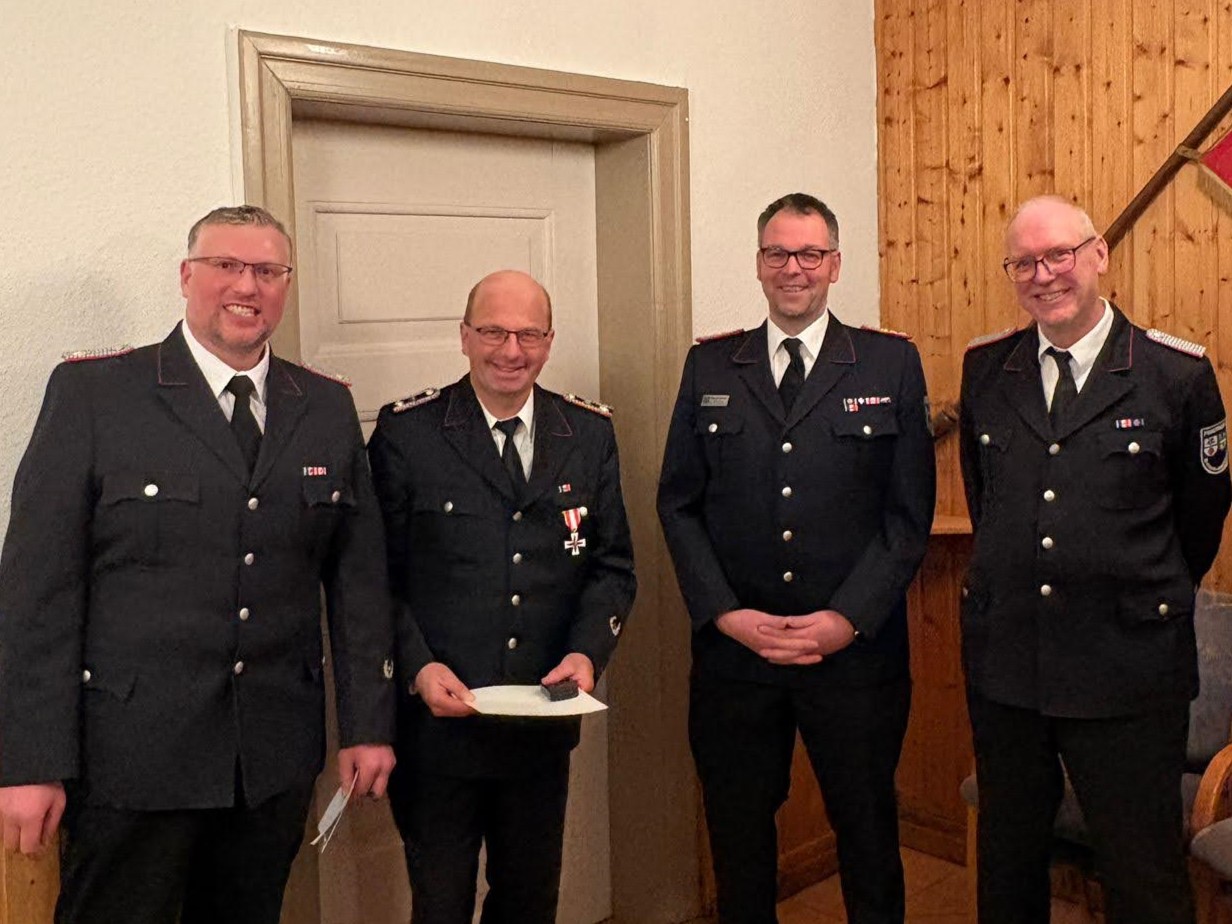 Peter Kaiser wurde für 50 Jahre sowie Fin Galinowski für 20 Jahre aktiven Dienst in der Feuerwehr geehrt. Peter Kaiser wurde mit dem Brandschutz – Ehrenzeichens in Gold ( 50 Jahre ) und Thomas Staack mit dem Brandschutzehrenzeichen in Silber und ausgezeichnet.